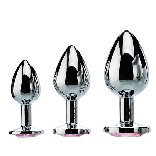 Loud booty luxury and kinky anal fun... all at the same time! These super-smooth solid metal anal plugs are adorned with a brilliant faux jewel to add visual excitement as you experience butt-tingling thrills. Also great for bling-adorned prostate play, too! Each solid metal plug offers a weight challenge while it stimulates. Discover and develop new muscle control with up to 5.7 ounces of booty-tastic thrills. Now that's some heavy lifting! Free storage bag included. Made from aluminum with an ABS plastic jewel.